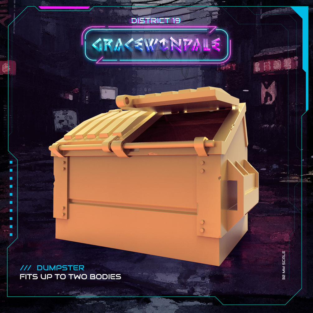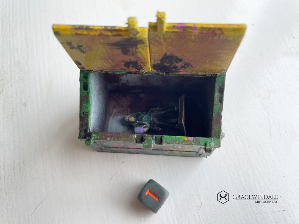 Dumpster. Fits up to 2 bodies. Or 20 12mm dice.